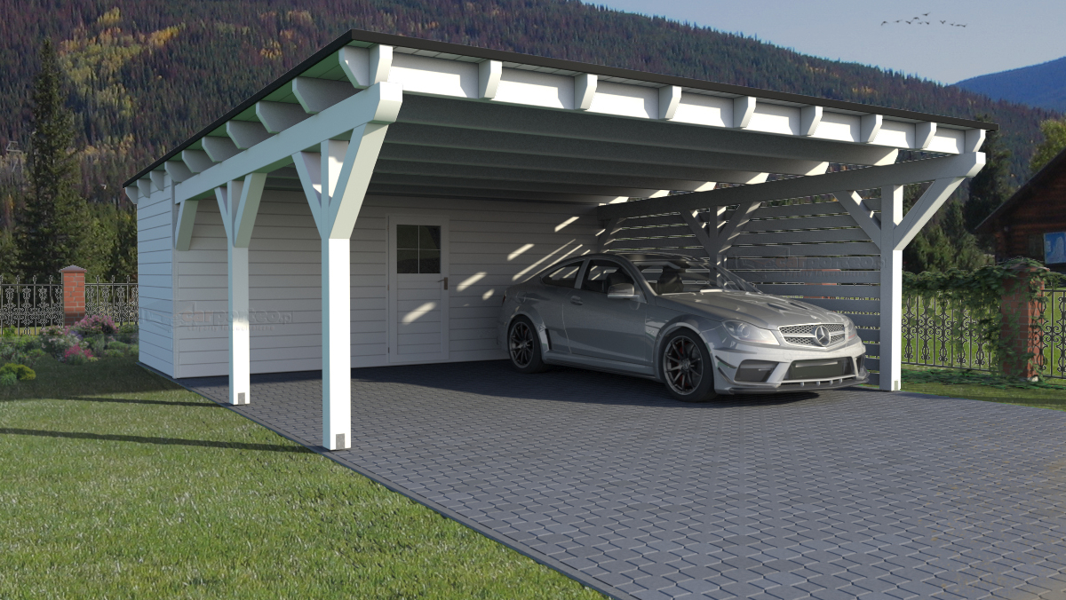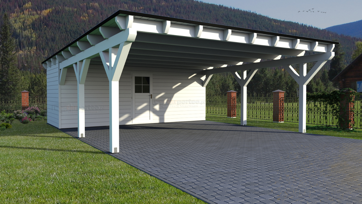 - wysokość wiaty: 280 cm przód, 230 cm tył,